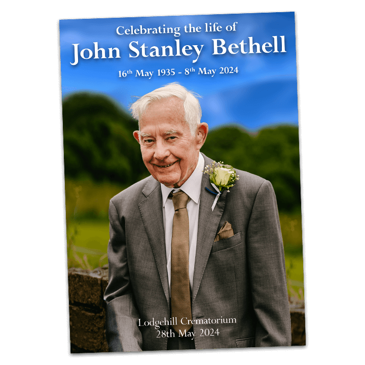 John Stanley Bethell 16th May 1935 - 8th May 2024 For those unable to attend in person. We appreciate not all those who knew John are able to attend his celebration in person. If you would like to download the booklet from the celebration please use the link below. Download booklet Service Memorial video A selection of videos and images reflecting on John’s life. Memories